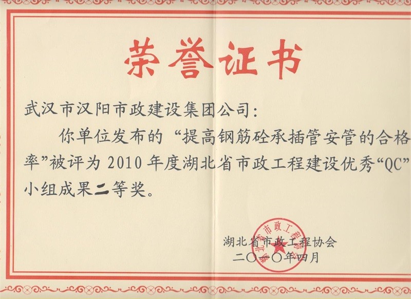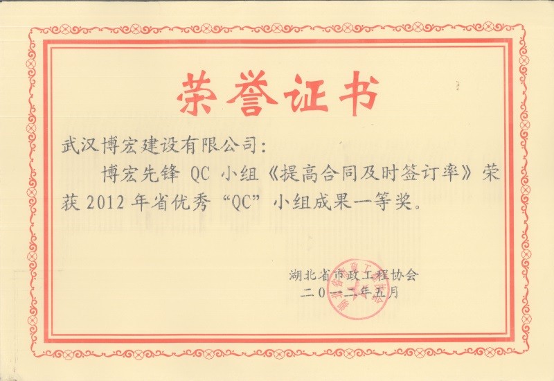 2012年度全國(guó)市政工程建設(shè)先進(jìn)質(zhì)量管理小組