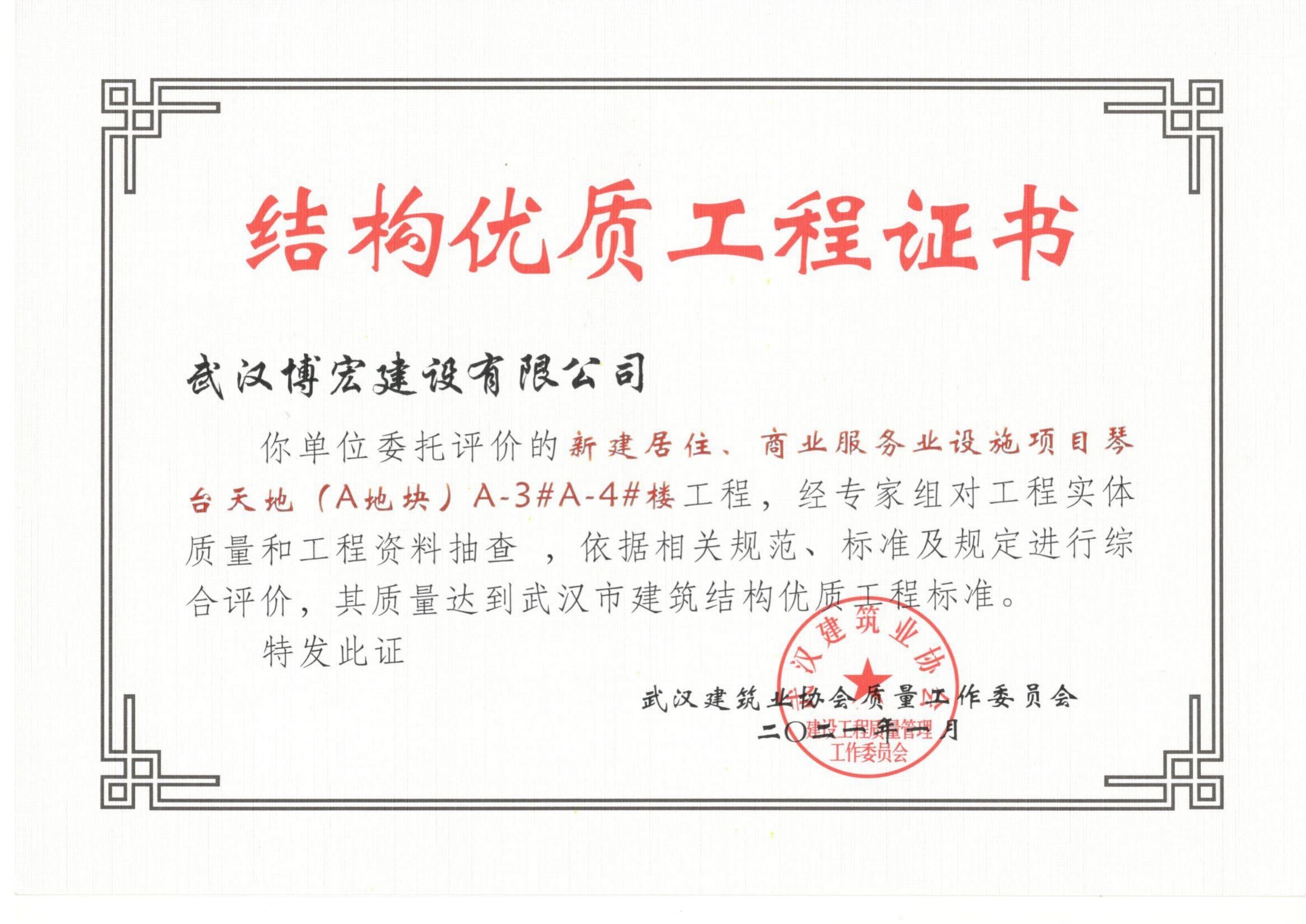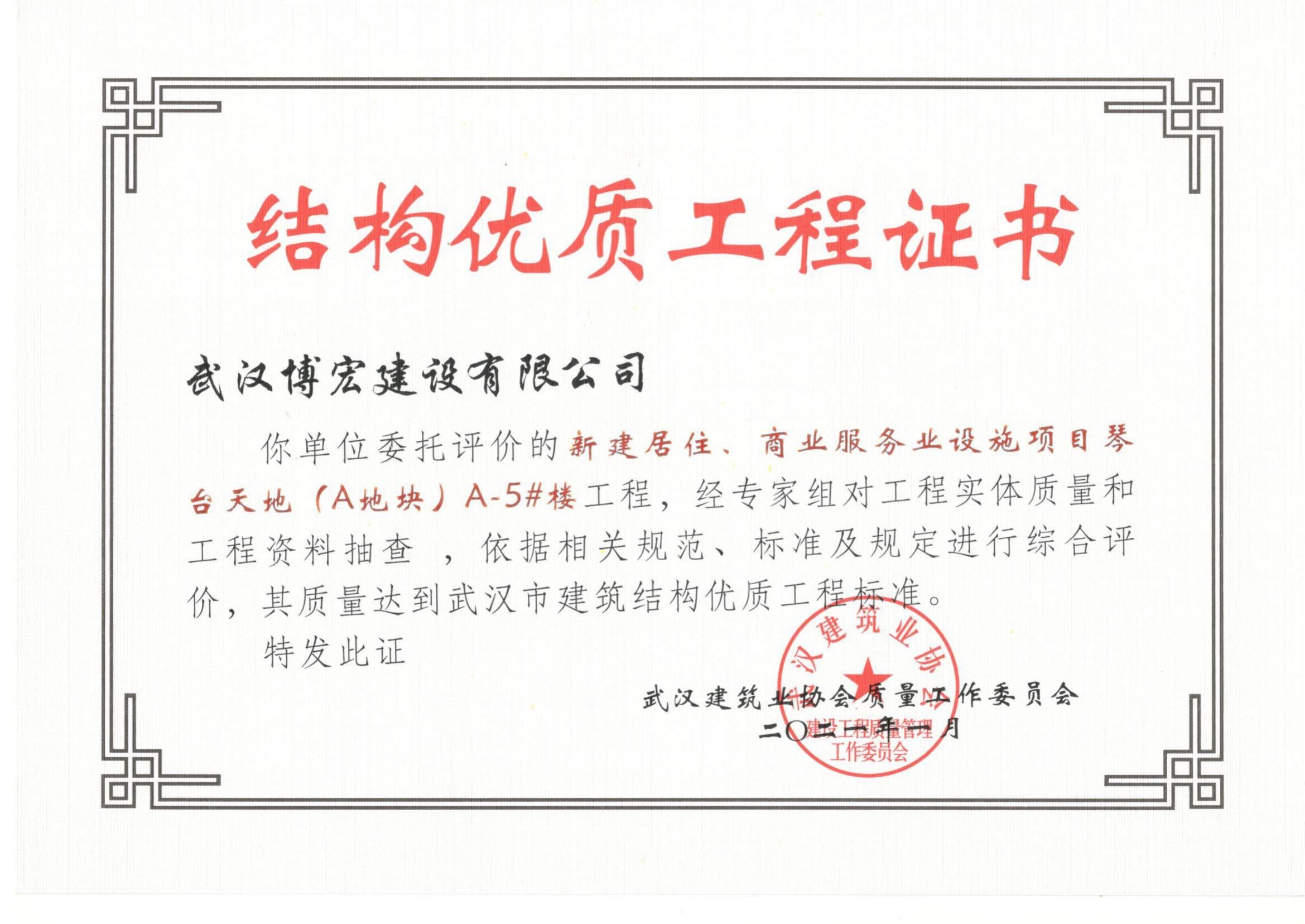 琴臺天地(B地塊)二期B-1#樓武漢市建筑結(jié)構(gòu)優(yōu)質(zhì)工程