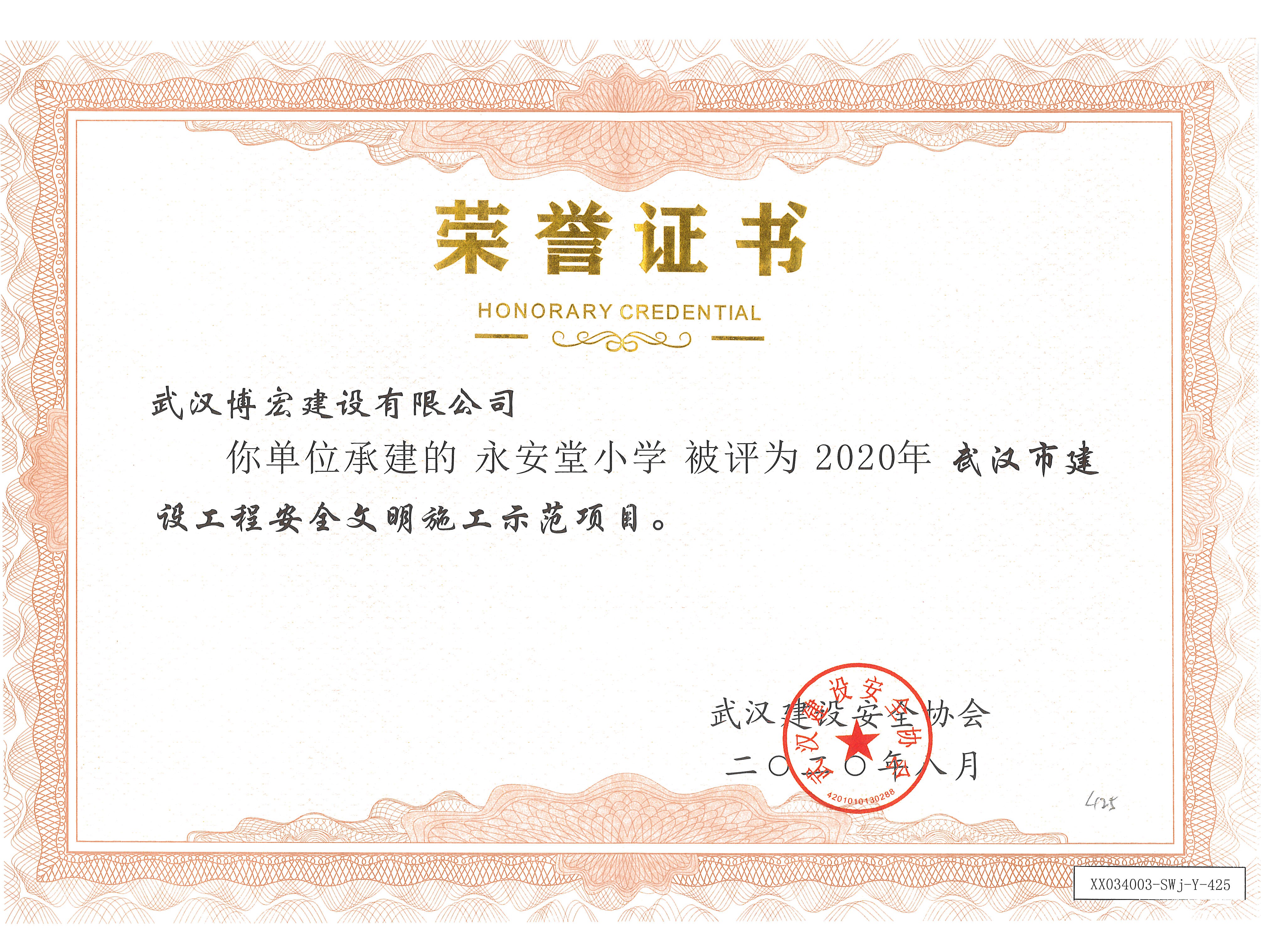 2020年武漢市建設(shè)工程安全文明施工示范項目(永安堂小學(xué))