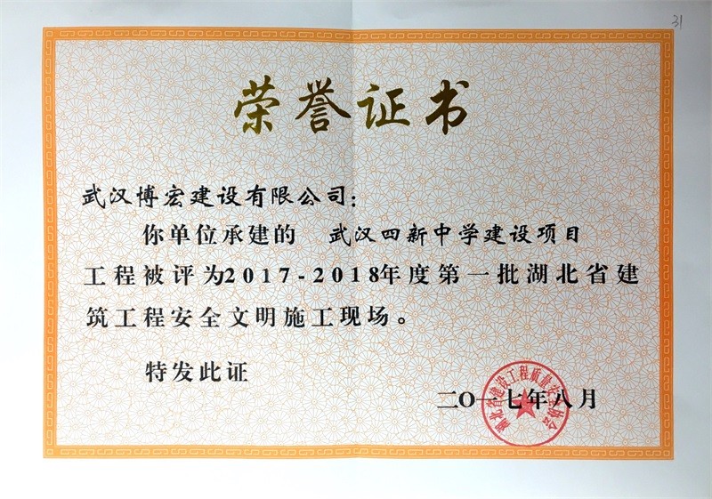 2017-2018年度第一批湖北省建筑工程安全文明施工現(xiàn)場 (武漢四新中學(xué)建設(shè)項目)