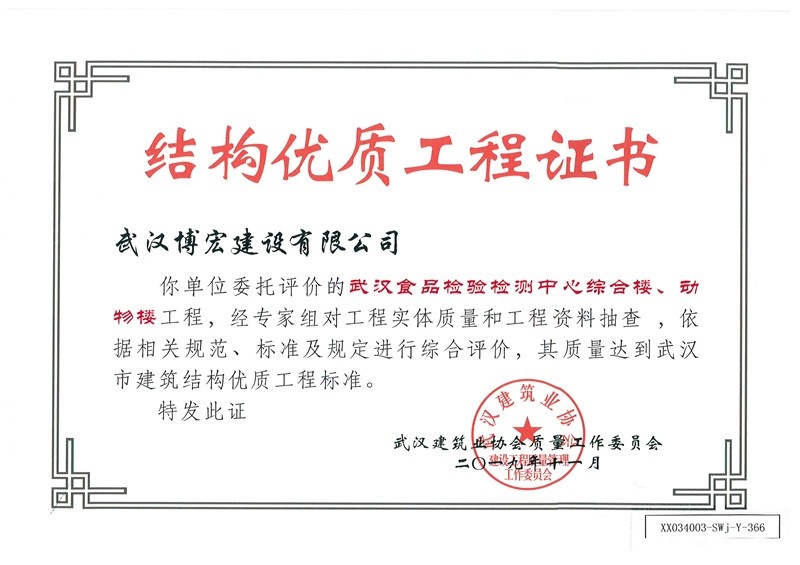 結(jié)構(gòu)優(yōu)質(zhì)工程證書(食檢中心綜合樓、動物樓)
