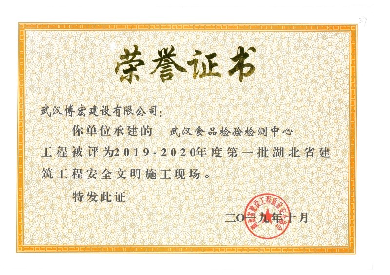2019-2020年度第一批湖北省建筑工程安全文明施工現(xiàn)場(武漢食品檢驗檢測中心)