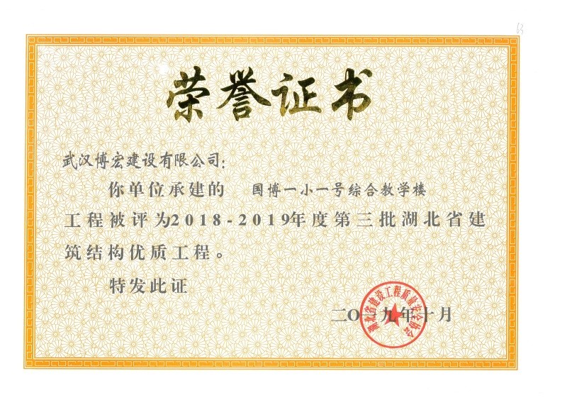2018-2019年度第三批湖北省建筑結(jié)構(gòu)優(yōu)質(zhì)工程(國博一小一號綜合教學(xué)樓)