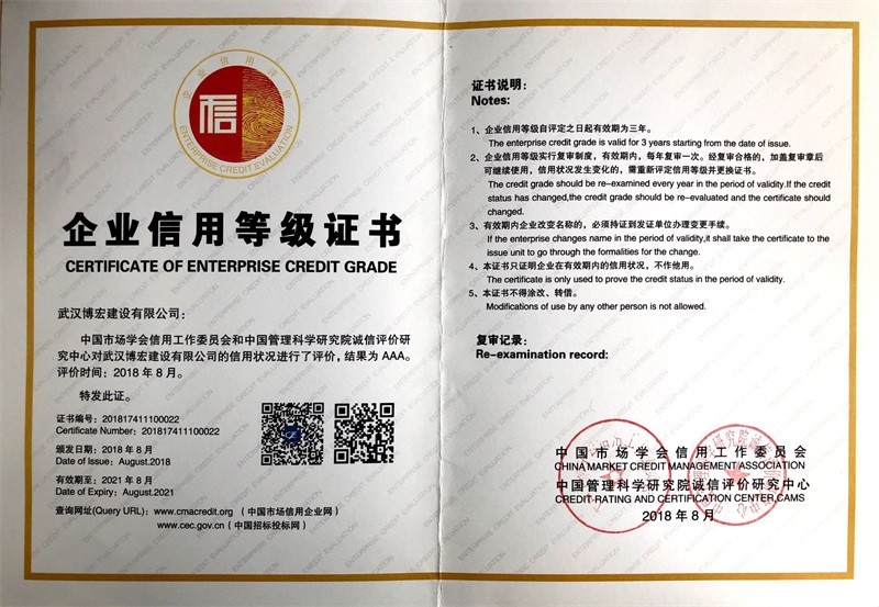 中國市場學(xué)會(huì)企業(yè)信用等級(jí)證書