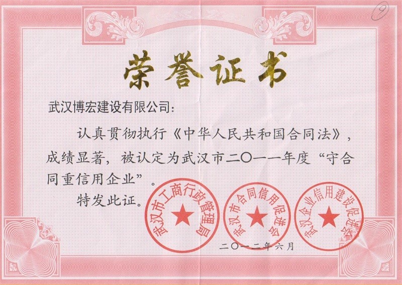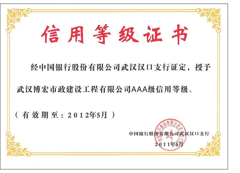2012-2013年度武漢地區(qū)市政行業(yè)企業(yè)信譽(yù)等級證書