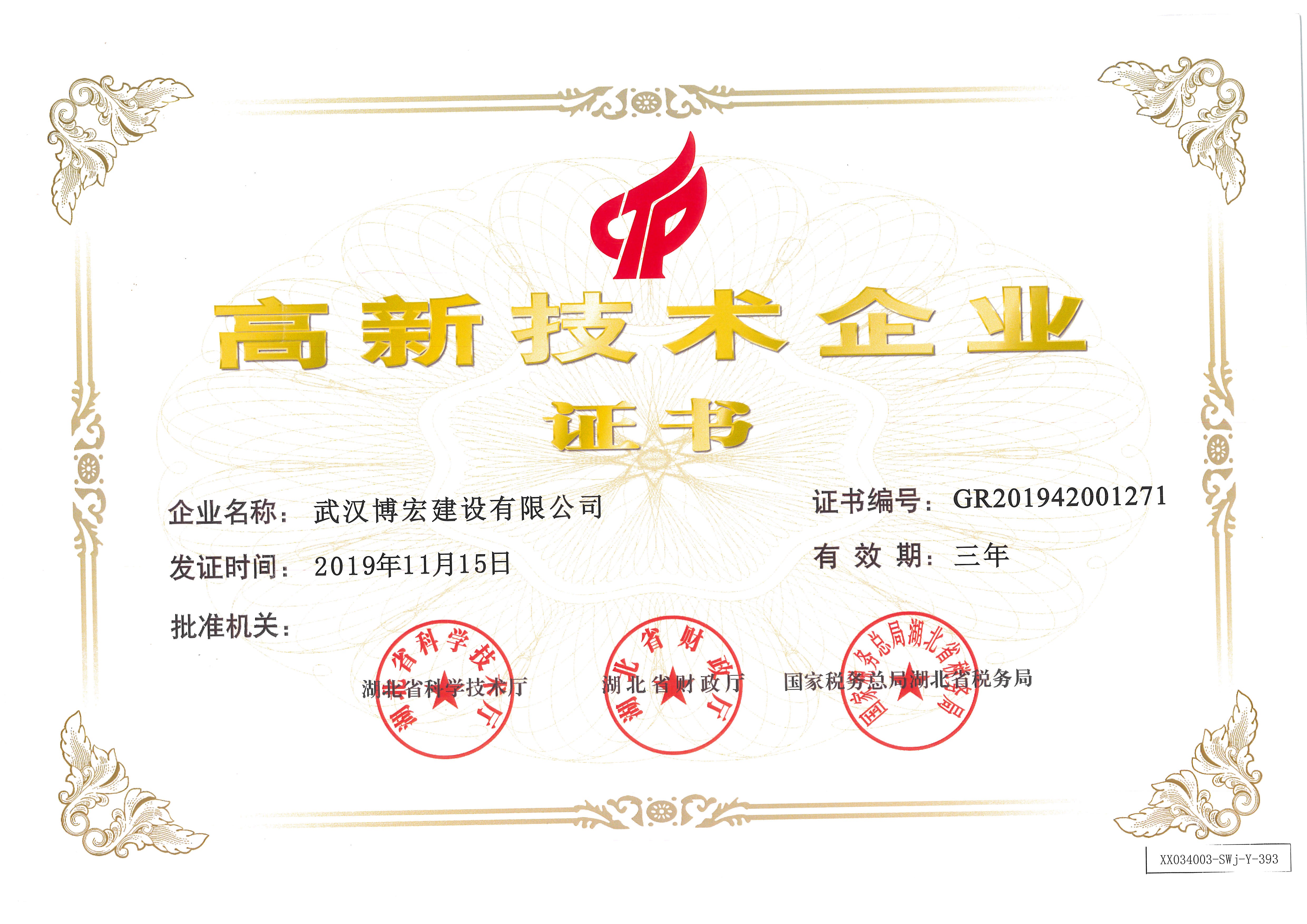 2019年11月高新技術(shù)企業(yè)證書(shū)