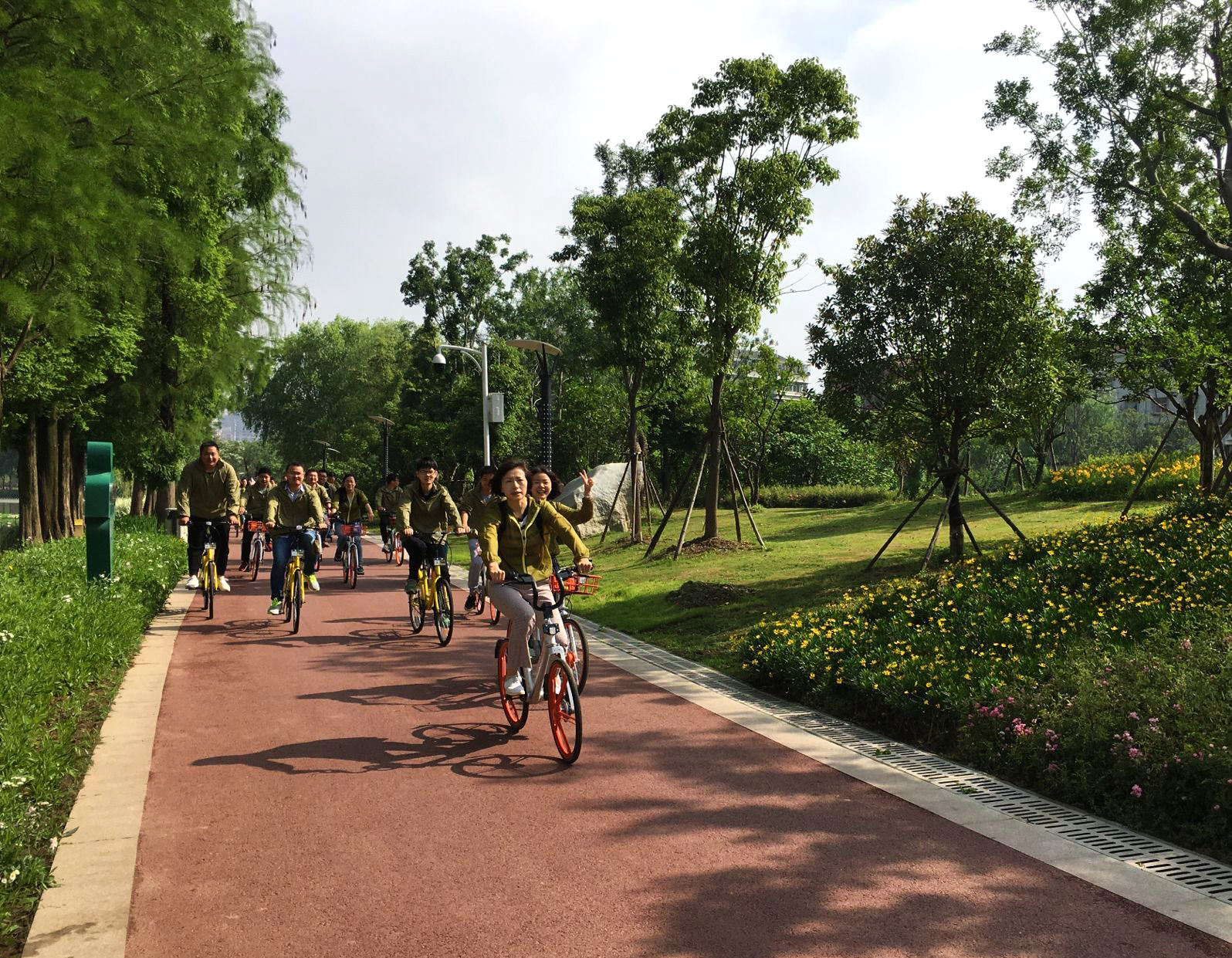 五月的清晨涼風(fēng)習(xí)習(xí),天氣爽朗。上午八點(diǎn)半,大家統(tǒng)一著裝,齊聚墨水湖公園,黨支部書記周紅一番激情飛揚(yáng)的致辭迎來了本次活動的重點(diǎn)——騎行參觀我公司承建的墨水湖公園項(xiàng)目。