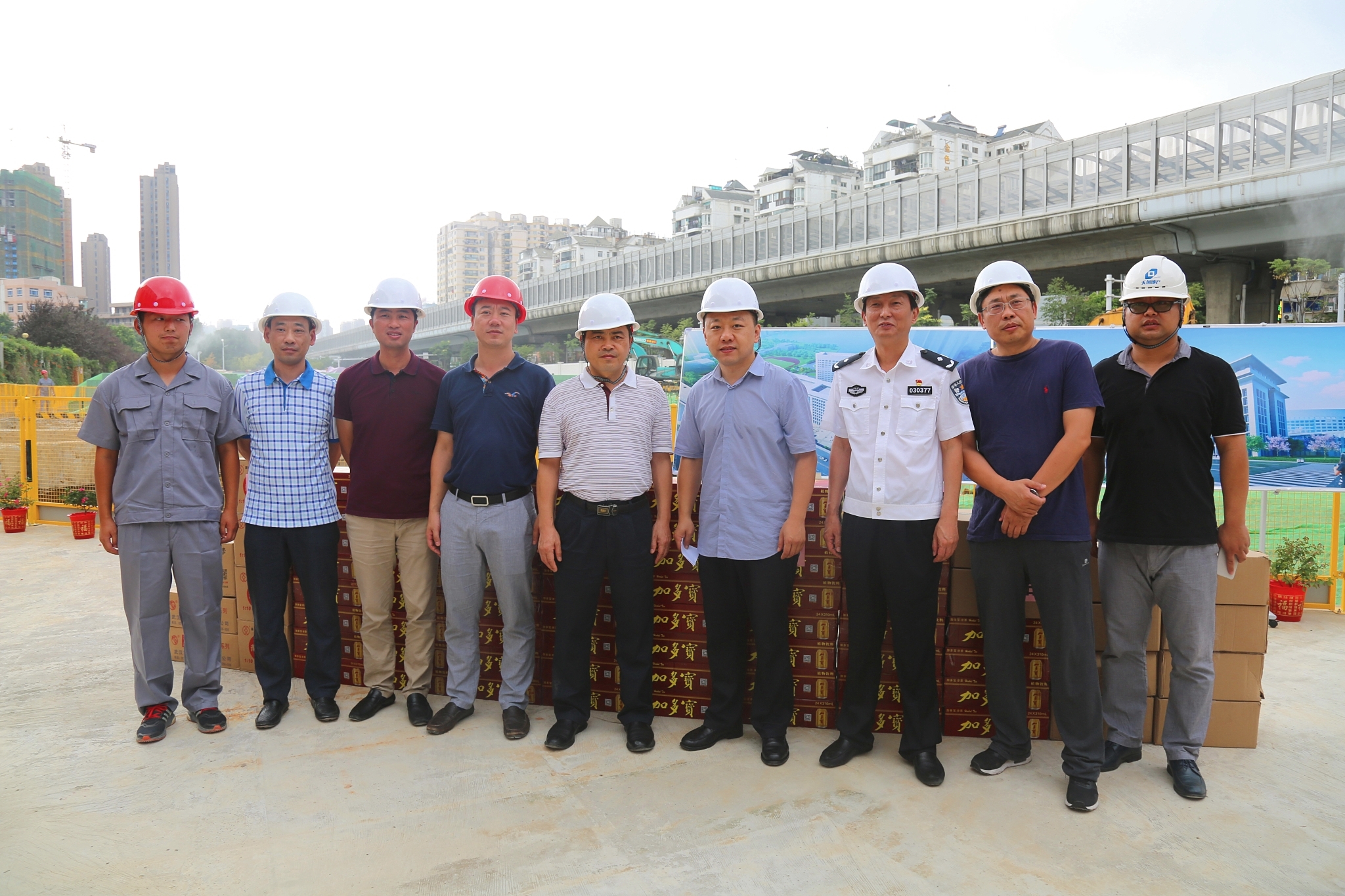 入伏以來(lái),武漢持續(xù)高溫,近日來(lái)氣溫更是突破40度大關(guān),7月31日下午,漢陽(yáng)區(qū)委副書記閻磊、區(qū)委常委張才勝、副區(qū)長(zhǎng)胡勇等一行冒著高溫走訪慰問了漢陽(yáng)市政博宏公司在建工地,對(duì)在高溫下堅(jiān)守建設(shè)崗位的基層施工人員表示關(guān)心和慰問,并送來(lái)了消暑降溫用品,漢陽(yáng)市政黨委書記兼董事長(zhǎng)嚴(yán)悌文、漢陽(yáng)市政博宏公司總經(jīng)理錢濤等陪同。
