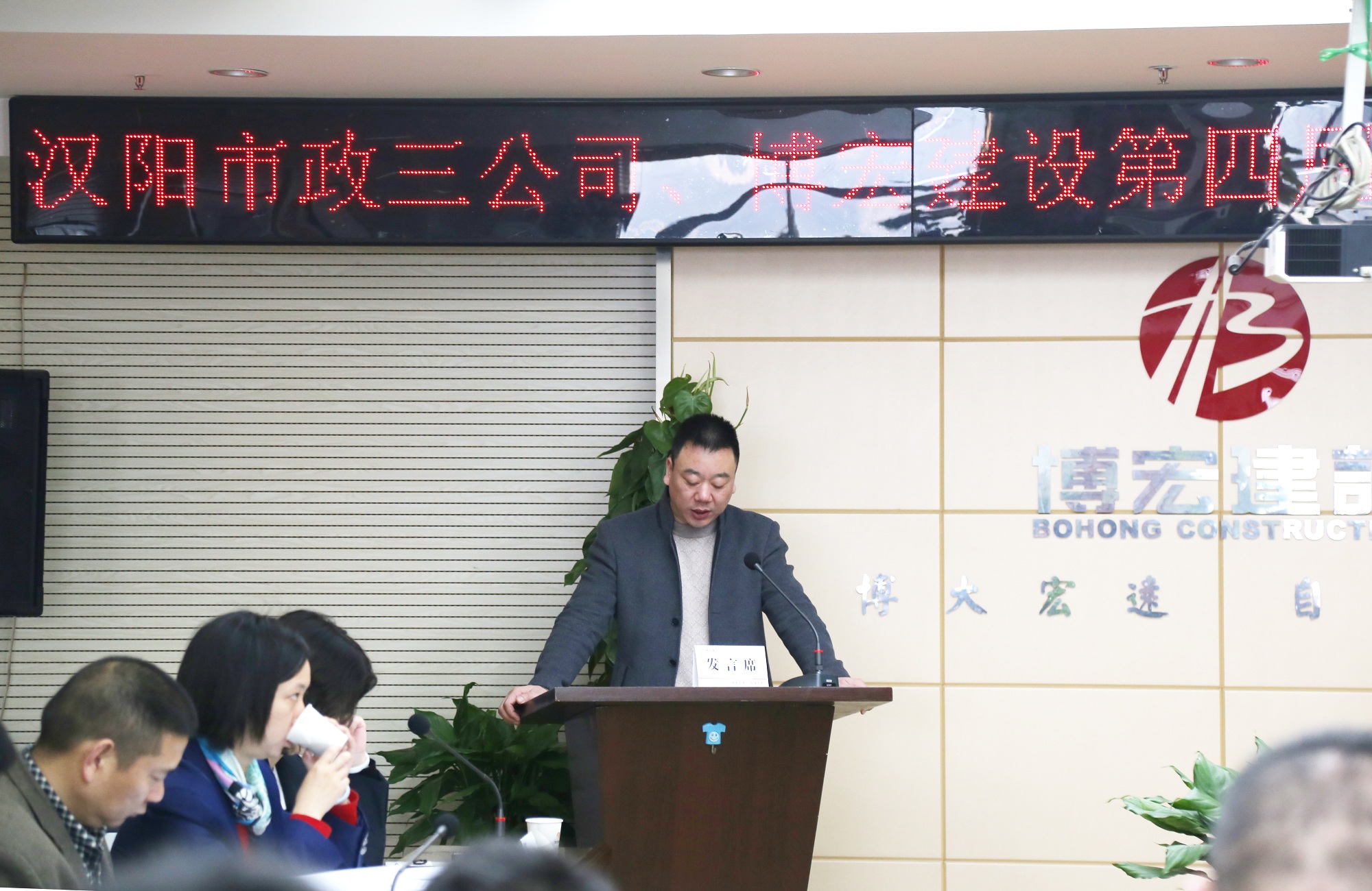 2018年3月23日上午,漢陽市政三公司、博宏建設(shè)第四屆第二次聯(lián)合職工代表大會在莊嚴(yán)的國歌聲中順利開幕,漢陽市政集團(tuán)公司副總經(jīng)理邢榮斌蒞臨會議現(xiàn)場,公司領(lǐng)導(dǎo)班子及31名職工代表出席會議,會議由工會主席李俊主持。