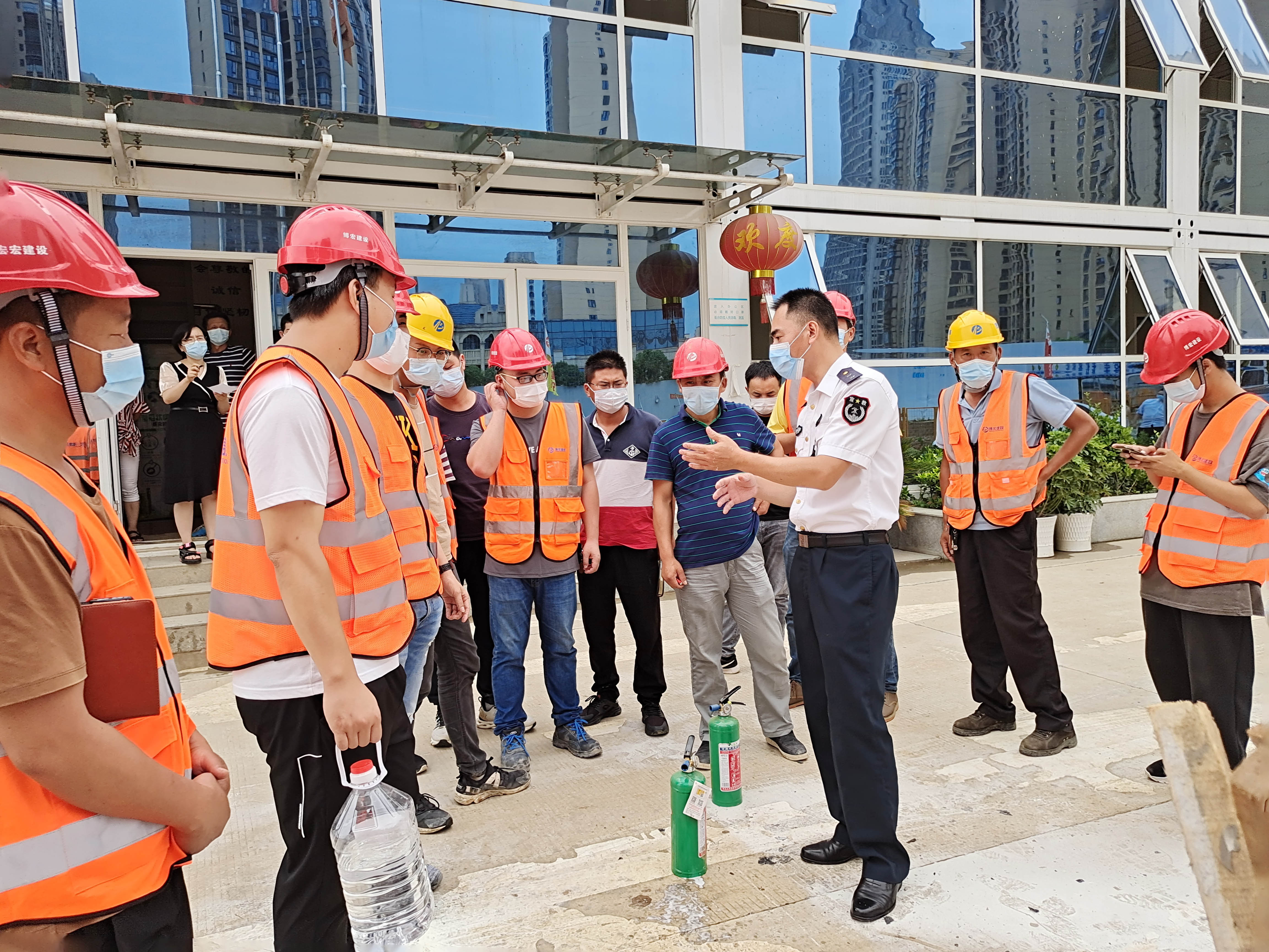 演練中,公司邀請(qǐng)到湖北省楚安防火宣教中心謝小秋教官來(lái)到項(xiàng)目現(xiàn)場(chǎng)進(jìn)行了消防安全知識(shí)講解。期間,重點(diǎn)介紹了各類(lèi)滅火器的使用方法和適用場(chǎng)景,并現(xiàn)場(chǎng)進(jìn)行了演示。