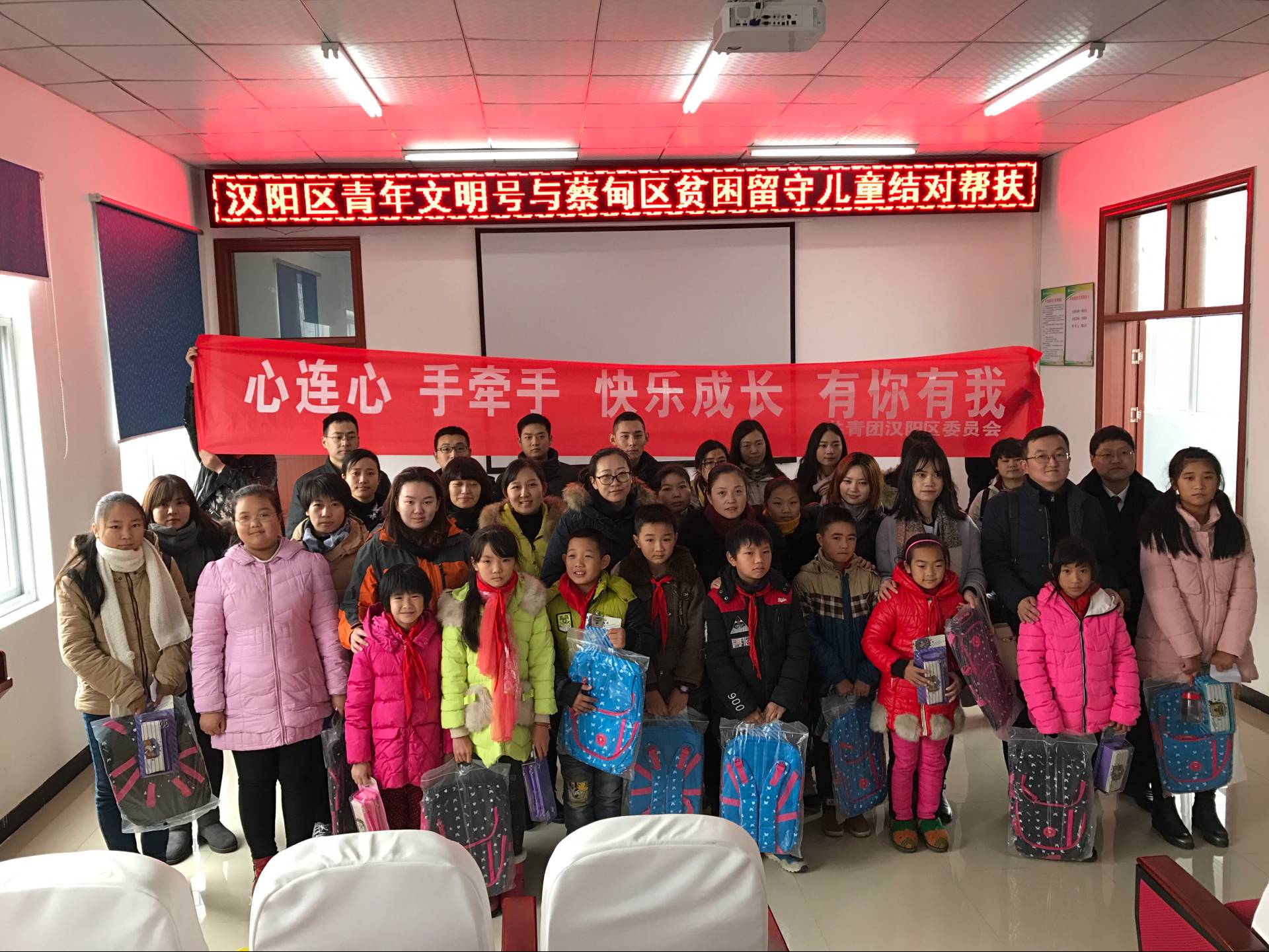 11月24日,為認(rèn)真落實(shí)共青團(tuán)助力脫貧攻堅(jiān)電視電話會(huì)議精神,根據(jù)“關(guān)愛(ài)留守兒童,助力精準(zhǔn)扶貧”行動(dòng)整體安排,漢陽(yáng)團(tuán)區(qū)委組織全區(qū)20個(gè)市級(jí)以上青年文明號(hào)單位赴蔡甸區(qū)消泗鄉(xiāng),集中慰問(wèn)幫扶貧困留守兒童,并進(jìn)行現(xiàn)場(chǎng)結(jié)對(duì),我公司參與了此次慰問(wèn)幫扶活動(dòng)。