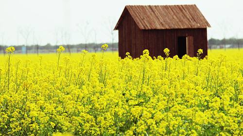 陽春三月,春風(fēng)如沐。桃花紅了、柳葉綠了,長江的水也暖和了。露水吻濕了片片綠葉,整個江城散發(fā)出如酒似蜜的清香。田里金黃的油菜花,成了蝴蝶的天地,美麗的蝴蝶在金黃色的舞臺上跳著柔和而優(yōu)美的舞姿,偶爾一陣微風(fēng)吹來,油菜花立刻涌起了高低起伏的“金浪花”,遠(yuǎn)遠(yuǎn)望去,令人美不勝收!——這是我記憶中的春天油菜花地。