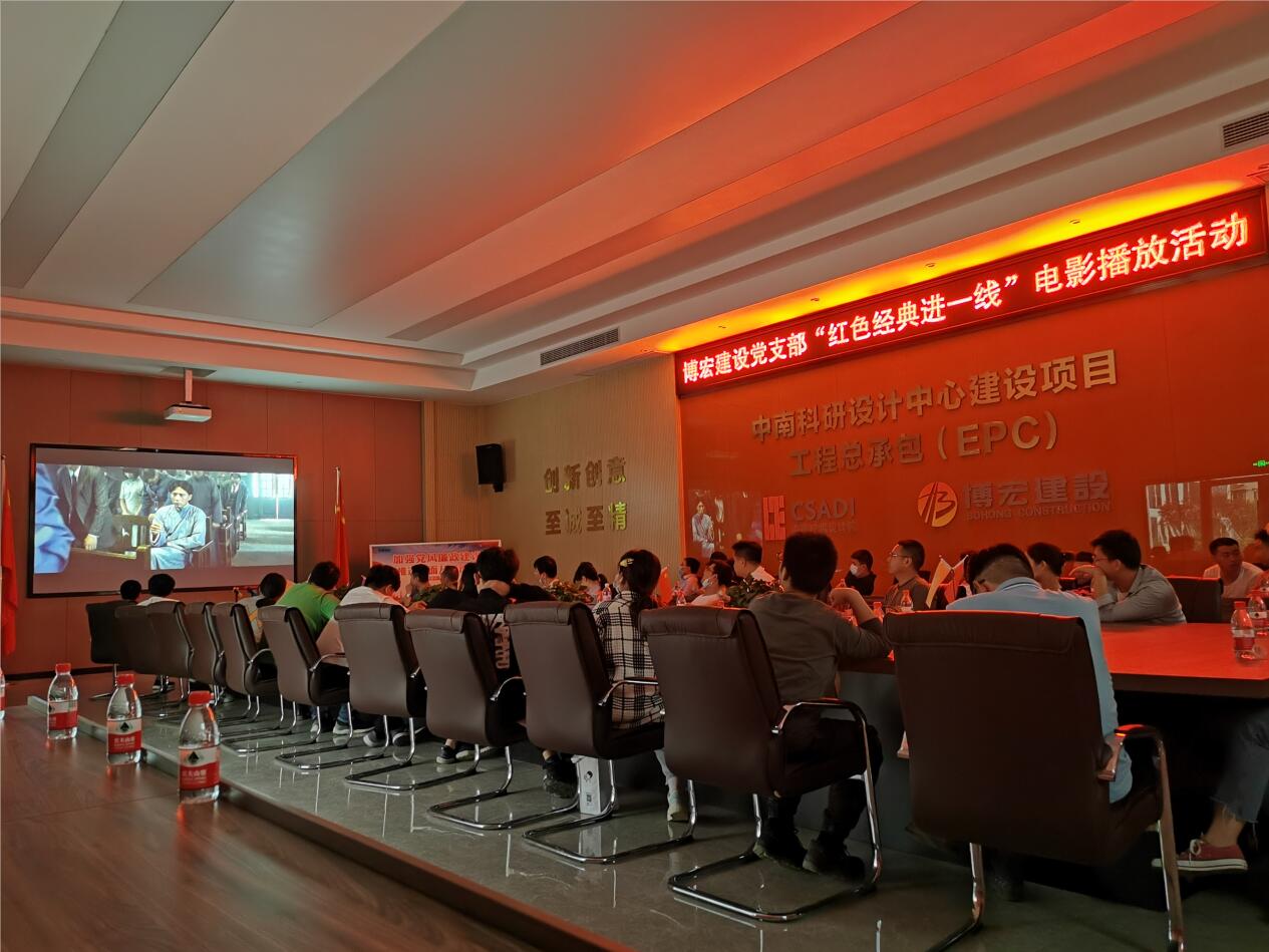 5月7日晚6點,漢陽市政博宏公司黨支部開展“建黨100年,光影映初心”電影播放活動,將紅色電影帶進公司中南科研設計中心項目部,50余位黨員群眾共同觀看“建國三部曲”系列電影之《建軍大業(yè)》,一起追憶紅色故事。