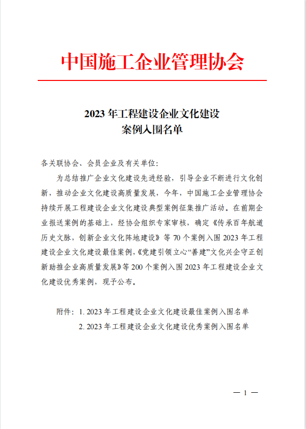近日,中國(guó)施工管理企業(yè)協(xié)會(huì)發(fā)布2023年全國(guó)工程建設(shè)企業(yè)文化建設(shè)最佳案例、優(yōu)秀案例,由博宏建設(shè)集團(tuán)申報(bào)的《文化賦能顯動(dòng)力 創(chuàng)新融合促發(fā)展》獲評(píng)“企業(yè)文化建設(shè)優(yōu)秀案例”。