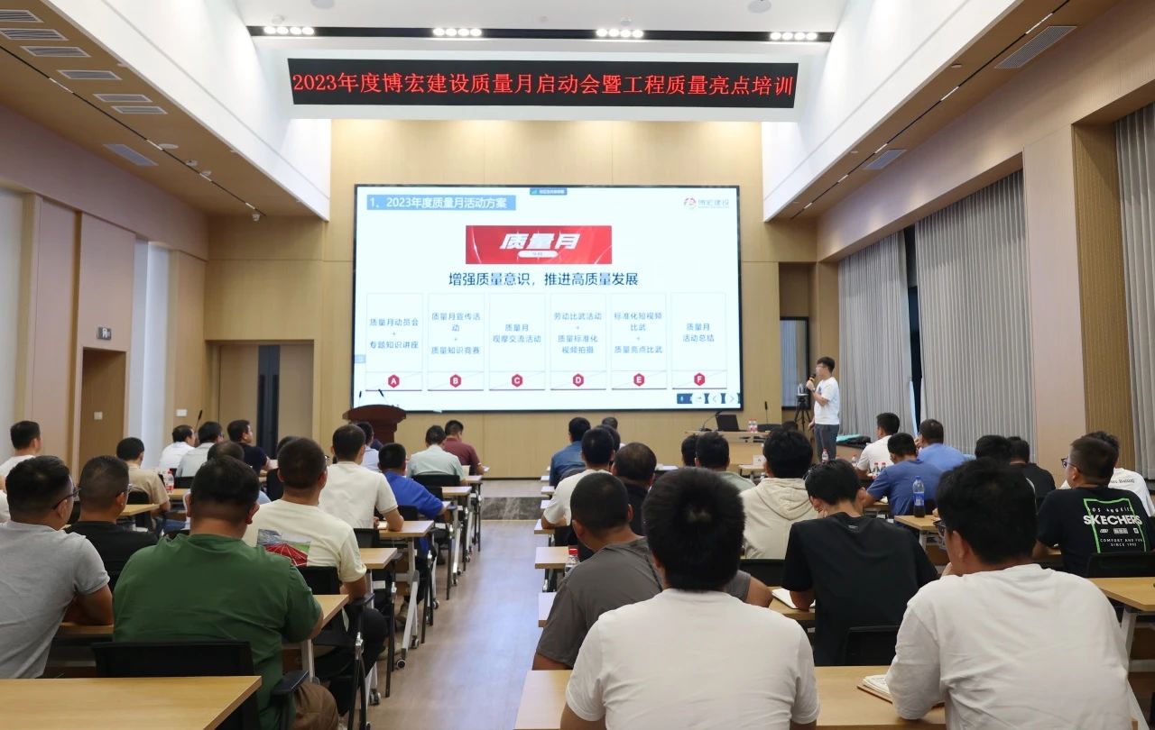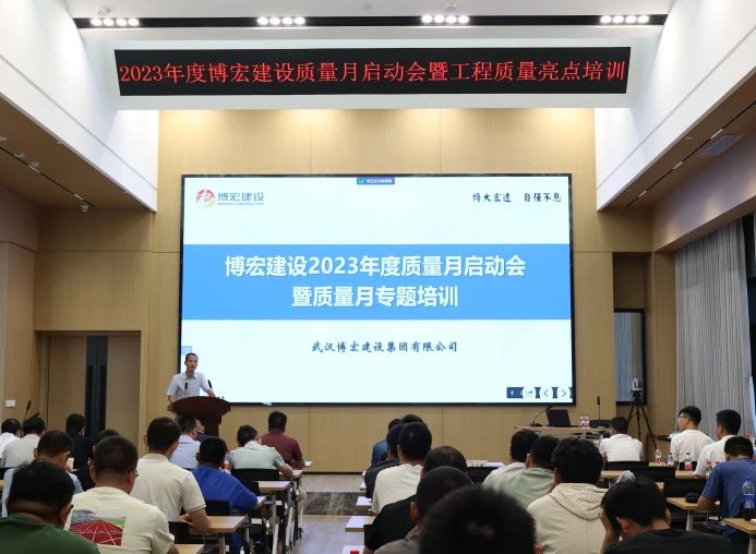 今年9月是第45個(gè)全國質(zhì)量月,為全面貫徹黨的二十大精神,落實(shí)《質(zhì)量強(qiáng)國建設(shè)綱要》部署,促進(jìn)質(zhì)量強(qiáng)國建設(shè)。9月15日下午,博宏建設(shè)舉辦以“增強(qiáng)質(zhì)量意識,推進(jìn)質(zhì)量發(fā)展”為主題的2023年質(zhì)量月啟動會暨工程質(zhì)量亮點(diǎn)培訓(xùn),黨委書記、董事長、總經(jīng)理鄒勇,總經(jīng)理助理李暉,質(zhì)量管理部部長、市內(nèi)外各項(xiàng)目部負(fù)責(zé)人及質(zhì)量崗位人員共計(jì)101人線上線下同步參與活動。