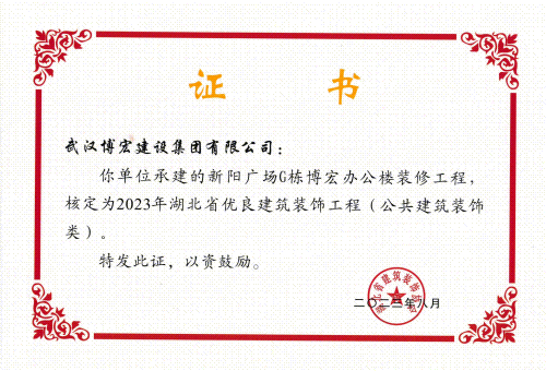 近日,湖北省建筑裝飾協(xié)會(huì)公布了2023年湖北省優(yōu)良建筑裝飾工程名單,由博宏建設(shè)集團(tuán)承建的新陽(yáng)廣場(chǎng)G棟辦公樓裝修工程項(xiàng)目、漢陽(yáng)區(qū)西部政務(wù)服務(wù)中心、國(guó)博D9等4所幼兒園整體改造項(xiàng)目(EPC) 獲評(píng)“2023年湖北省優(yōu)良建筑裝飾工程(公共建筑裝飾類)”榮譽(yù)稱號(hào)。