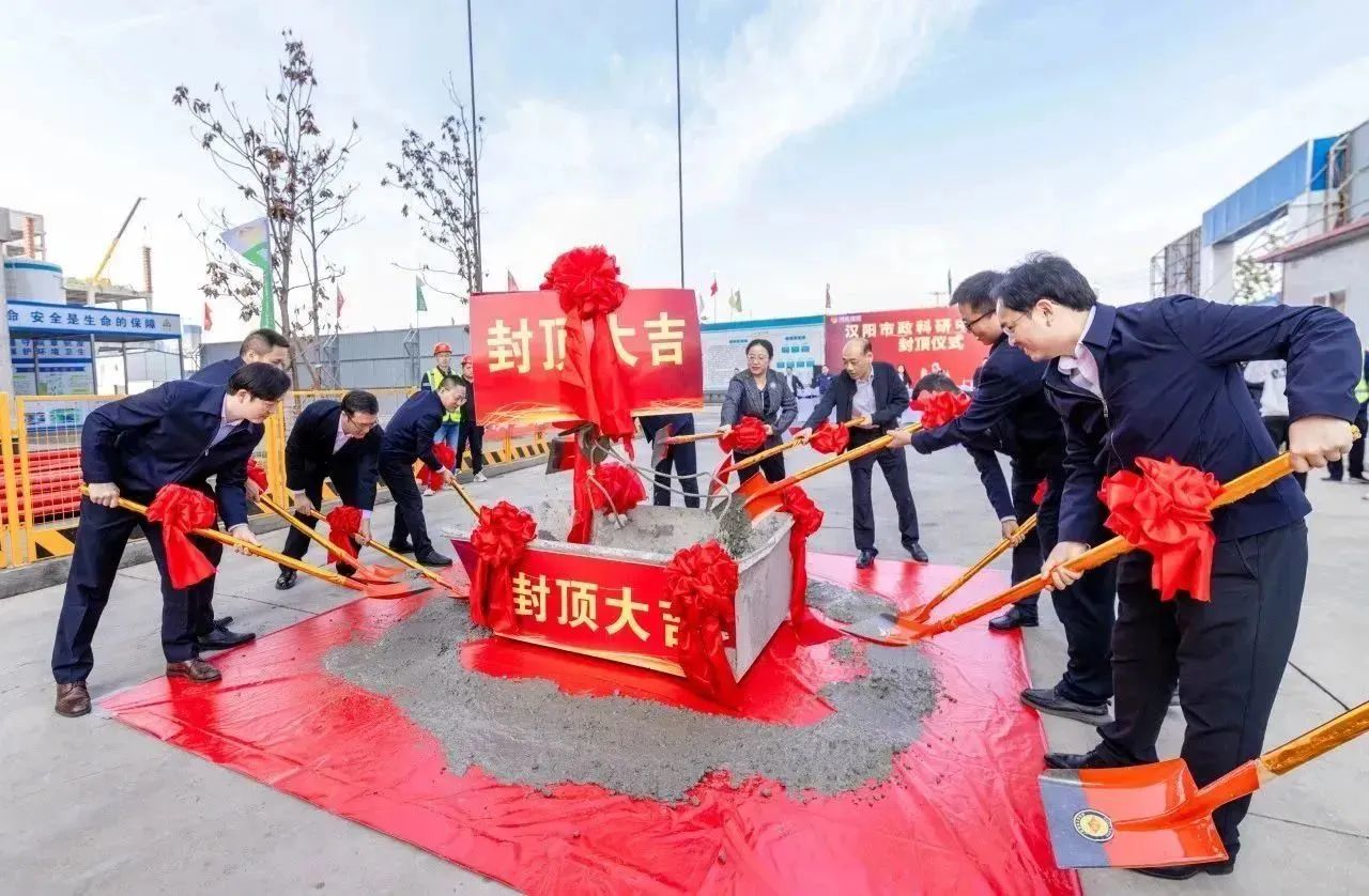 11點13分,嚴俊、王晟及漢陽市政集團、博宏建設集團等相關單位領導共同為項目澆筑最后一方混凝土,現(xiàn)場禮炮齊鳴,封頂儀式圓滿完成,標志著漢陽市政科研中心順利完成一個里程碑節(jié)點,現(xiàn)已進入新的建設階段。