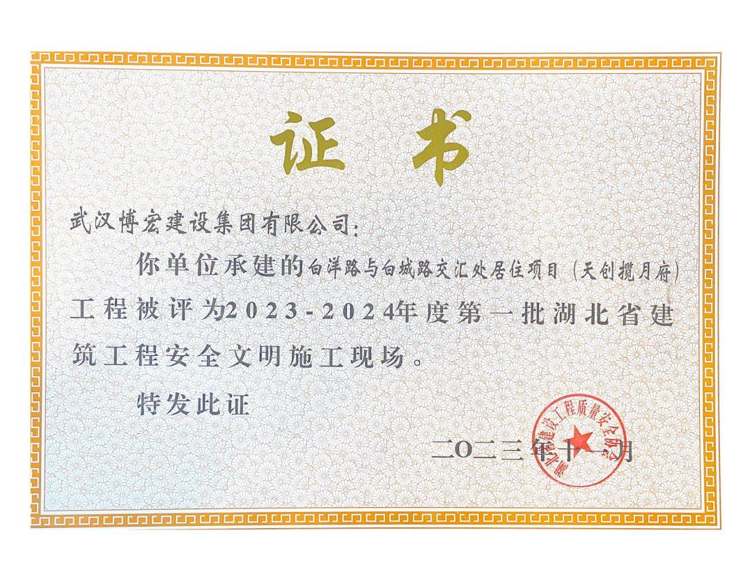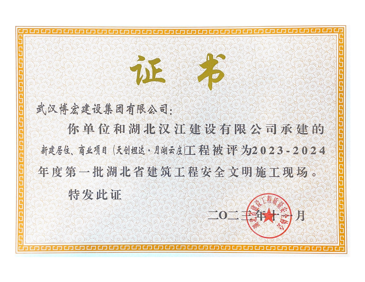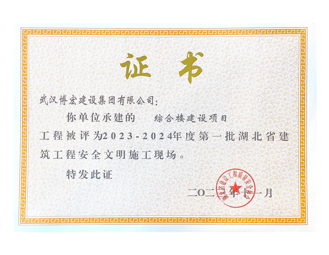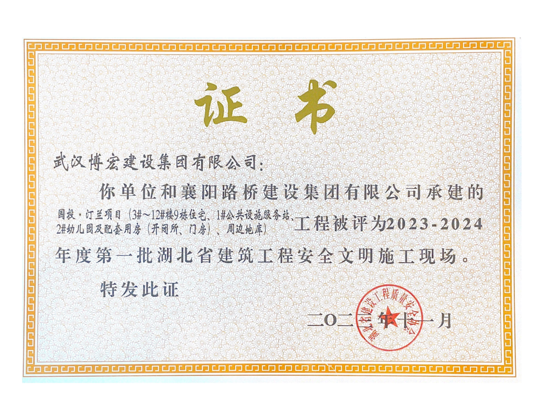近日,湖北省建設(shè)工程質(zhì)量安全協(xié)會(huì)公布了2023-2024年度第一批湖北省建筑工程安全文明施工現(xiàn)場(chǎng)名單,由博宏建設(shè)集團(tuán)承建的隨州市中心看守所辦公區(qū)、監(jiān)區(qū)及配電房;黃金口產(chǎn)業(yè)園商業(yè)設(shè)施、居住、公園綠地建設(shè)項(xiàng)目;新建工業(yè)項(xiàng)目(漢陽(yáng)市政科研中心)(EPC)等8項(xiàng)工程獲評(píng)湖北省建筑工程安全文明施工現(xiàn)場(chǎng)。