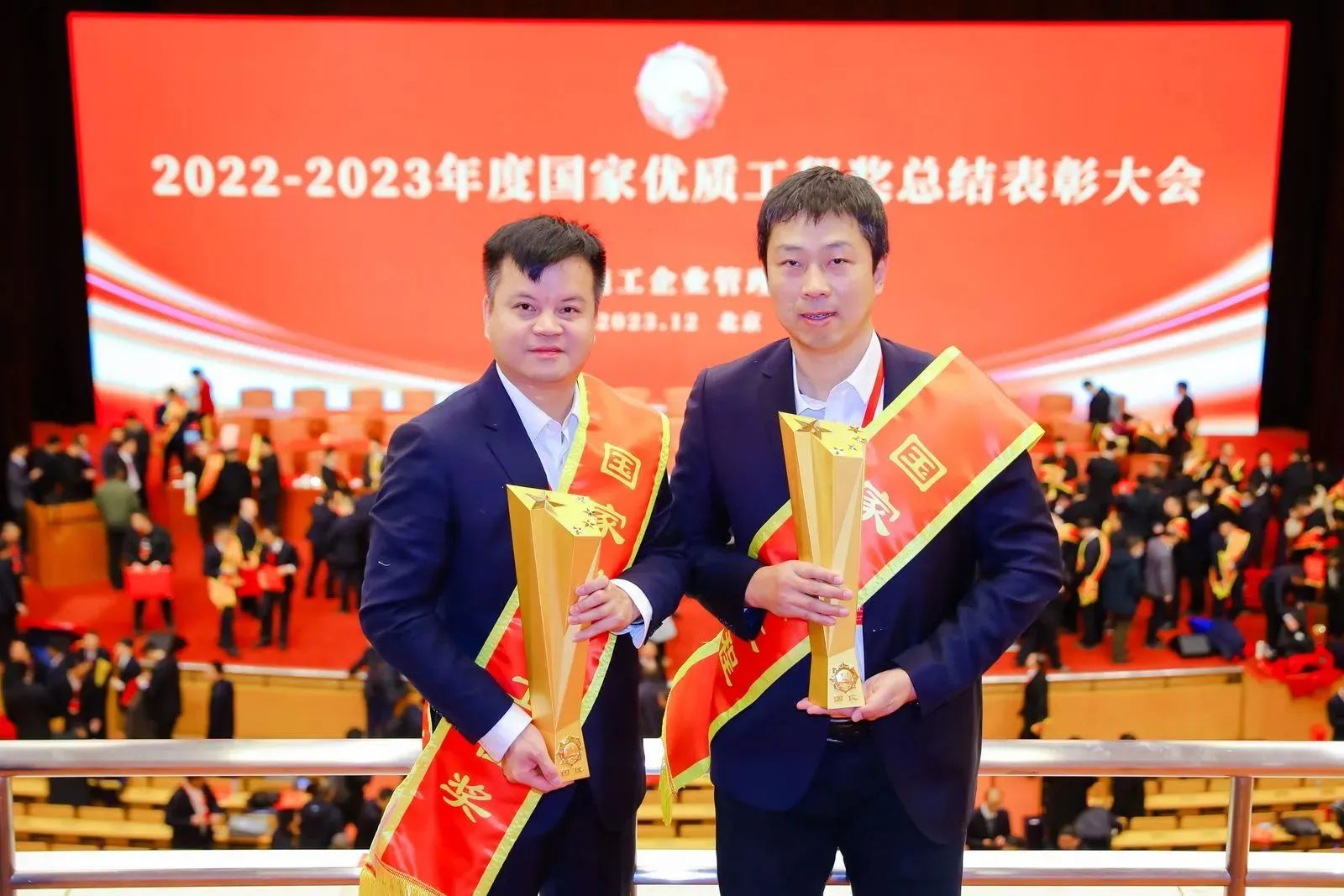 12月24日,2022~2023年度國家優(yōu)質(zhì)工程表彰大會在北京隆重召開,公司總經(jīng)理助理李暉、項(xiàng)目經(jīng)理童威接受頒獎。博宏建設(shè)集團(tuán)捧回了兩座浸染著汗水與拼搏的榮譽(yù)獎杯。
